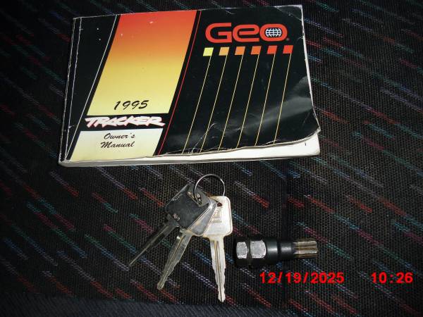 1995 Geo Tracker 4x4 Tin Top. automatic, working air, am/fm, original manual 3 keys, runs great, will go anywhere, very little rust, normal wear on drivers seat. owned it for twelve years, always garage kept, not many around this sound anymore, cash only can be seen just about anytime calls preferred or email only,
