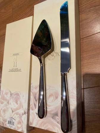 Selling a beautiful like new formal dessert set. Both the cake server and knife are in like new condition. They come in their original packaging and are wrapped up just like new…please take a look...